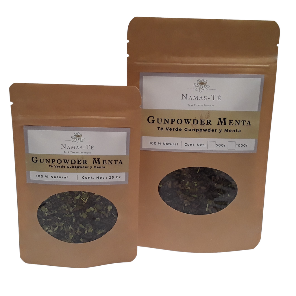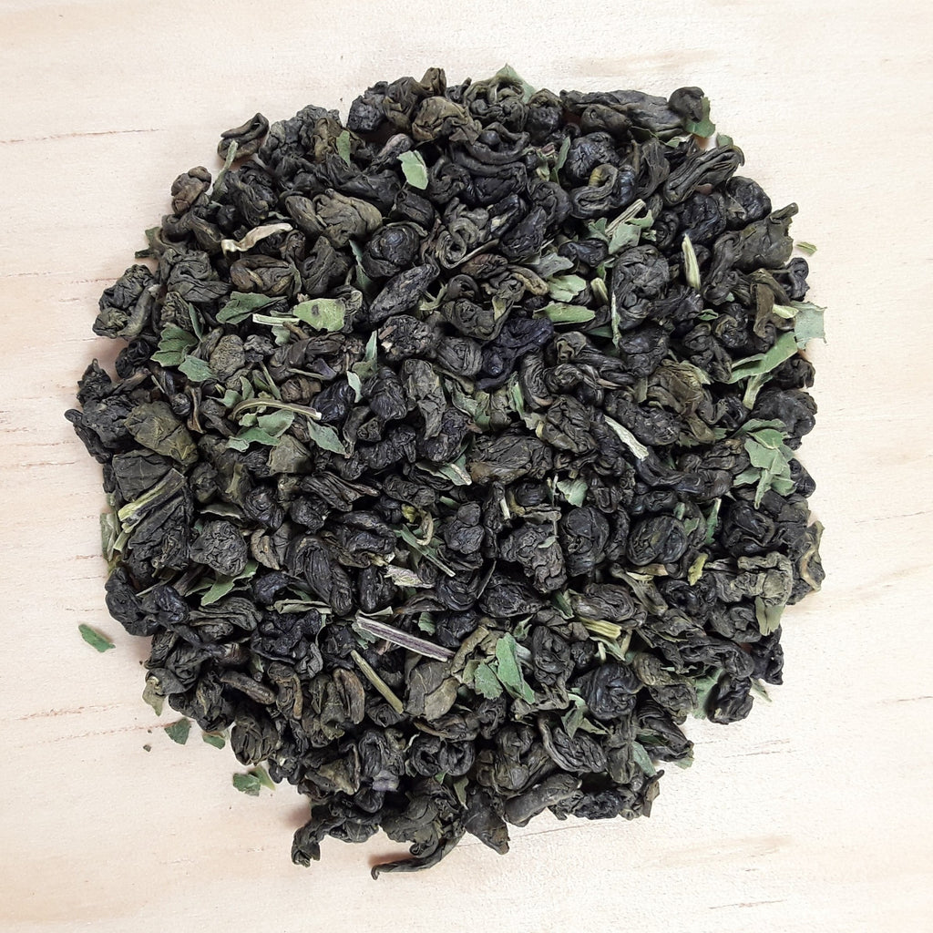 Té verde con hojas de menta cultivado en China, se caracteriza por su forma de hojas enrolladas en bolitas por lo que permite que la hoja retenga mucho más sus nutrientes, la menta le proporciona un sabor fresco y agradable al gusto.
